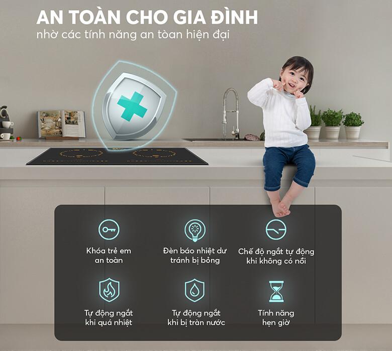 Bếp từ đôi Elmich ICE-3882 còn được trang bị nhiều tính năng an toàn hiện đại như khóa bàn phím an toàn trẻ em, tự động ngắt khi quá nhiệt, cánh báo nhiệt dư, cảnh báo nồi không phù hợp mang đến sự an toàn tuyệt đối cùng trải nghiệm nấu ăn hoàn toàn khác biệt so với các mẫu bếp truyền thống.