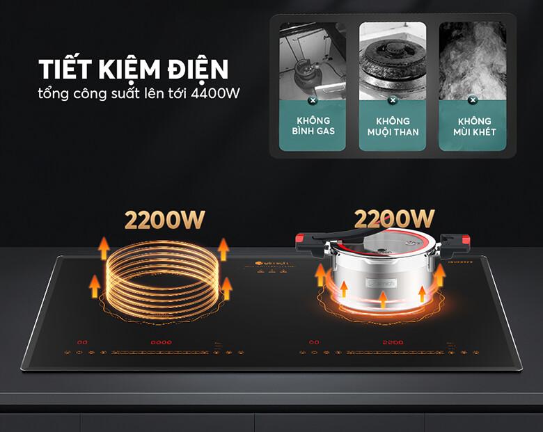 Bếp điện Elmich ICE-3882 hoạt động nhờ mâm từ sinh từ trường làm nóng trực tiếp đáy nồi, không mất thời gian làm nóng mặt bếp, không tỏa nhiệt ra ngoài môi trường giúp gia nhiệt cực nhanh đồng thời tiết kiệm điện hiệu quả. Trong đó,công suất mỗi bếp 2000W, booster tối đa 2200W giúp đun nấu cực nhanh. Bạn sẽ tiết kiệm được nhiều thời gian khi không phải chờ đợi các món ăn được làm nóng, đun sôi.