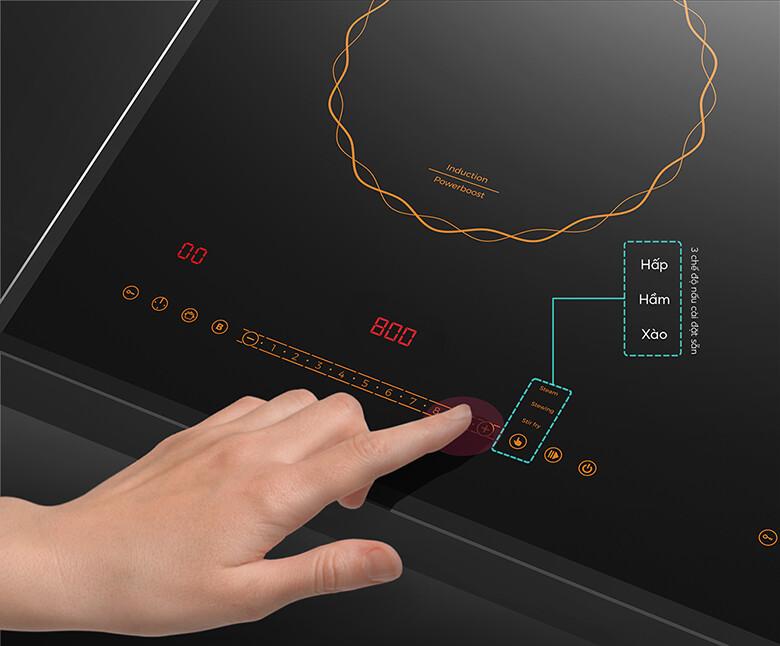 Tính năng Booster được tích hợp trên cả 2 vùng nấu giúp tăng công suất cực đại chỉ với 1 phím bấm. Các món nấu sẽ được đun sôi cực nhanh chỉ trong thời gian ngắn.