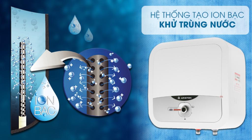 Công nghệ Ion Bạc Ag+ của bình tắm nóng lạnh Ariston có thể đảm bảo sạch khuẩn, ngăn ngừa vi khuẩn gây hại từ nguồn nước đầu vào. Đối với một số loại vi khuẩn gây hại không thể bị tiêu diệt bởi nước nóng dưới 100 độ thì đây sẽ là cách khắc phục tiêu diệt hiệu quả.