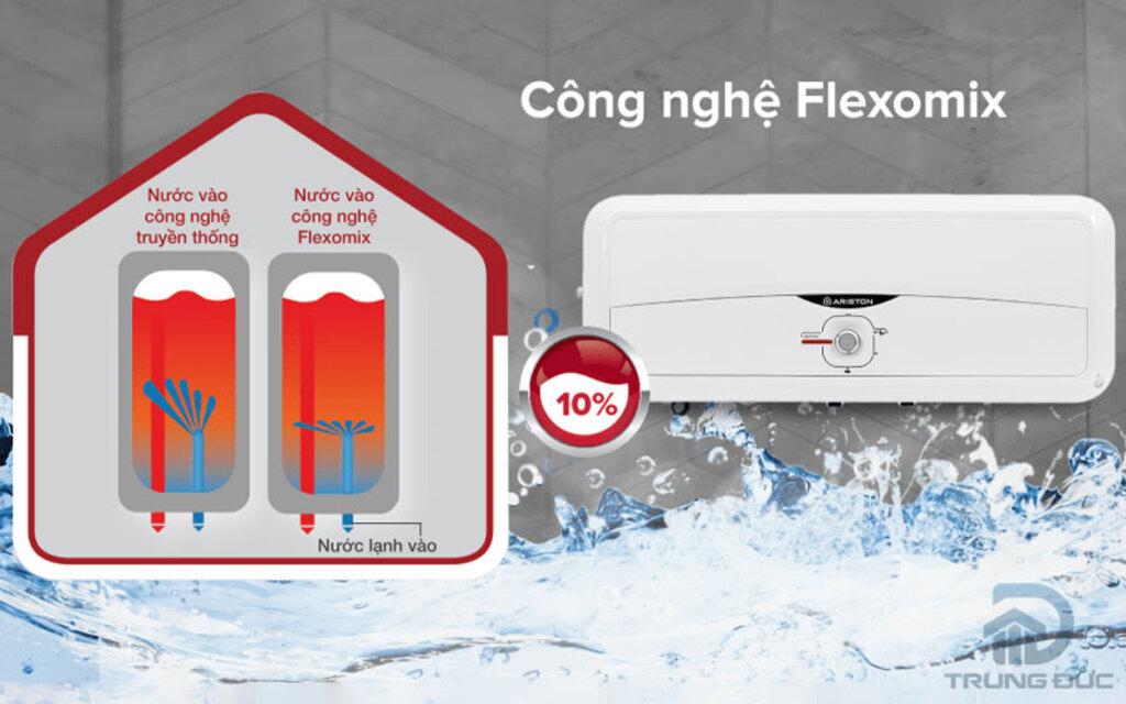 Công nghệ Flexomix có thiết kế dẫn nước đầu vào có kiểu dáng mới và mang đến độ hiệu quả hơn so với nước và công nghệ truyền thống. Với việc cải tiến này sẽ giúp cung cấp nước nóng cho bình được nhiều hơn đến 10% so với các loại bình thông thường khác.
