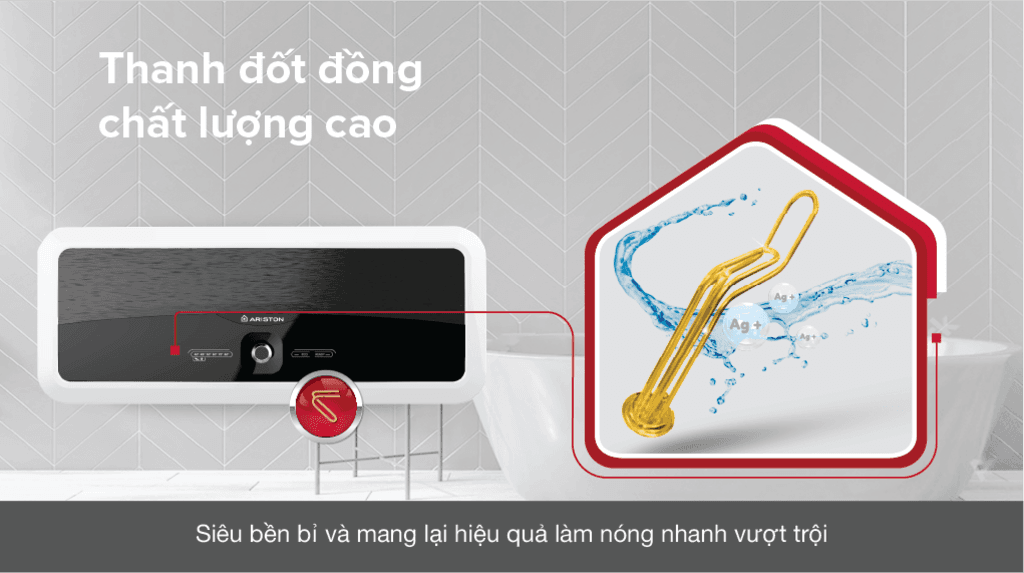 Là chuyên gia hàng đầu trên thế giới trong lĩnh vực gia nhiệt. Hầu hết các thanh đốt bình nóng lạnh ariston hiện nay đều được sử dụng đều có độ bền cao như là đồng hay Titan. Không chỉ giúp thanh đốt được bền bỉ hơn mà còn giúp cho làn nước được làm nóng nhanh chóng nhất có thể.