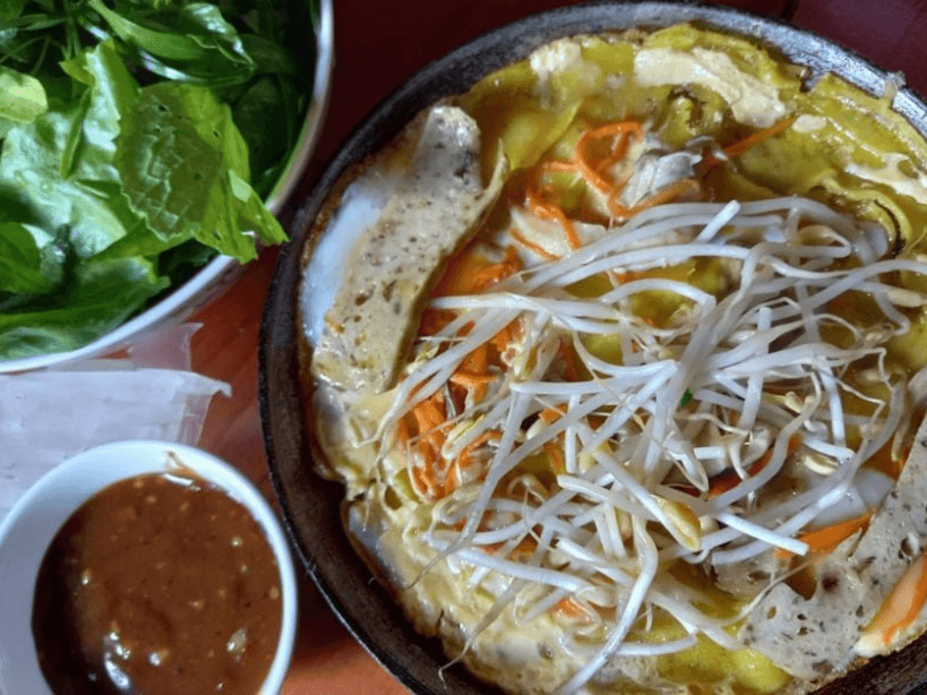 Sau khi đã chiên bánh xèo chay giòn tan, bạn có thể thưởng thức món bánh xèo chay với rau sống, nước chấm chua ngọt và các loại rau thơm để tăng thêm hương vị. Cách làm bánh xèo chay này không chỉ mang đến hương vị thơm ngon mà còn là lựa chọn lý tưởng cho những ai đang tìm kiếm món ăn vặt lành mạnh và ít dầu mỡ.