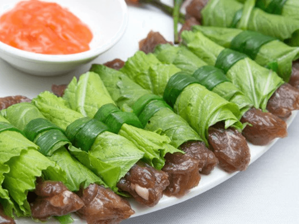 1. Bò cuốn cải chấm mù tạt – Món ăn tưởng quen mà hóa ra “đỉnh vị giác”