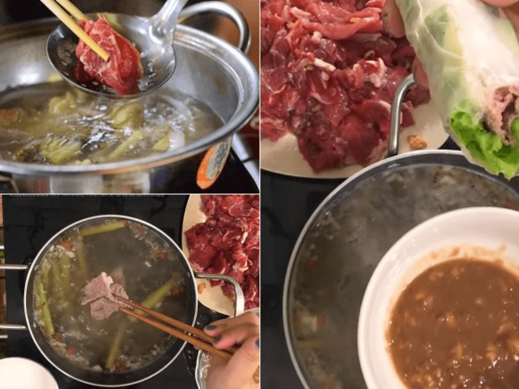 Mẹo: để thịt bò vào ngăn mát tủ lạnh 15 20 phút trước khi nhúng, giúp thịt săn, khi nhúng không bị teo hay dai.