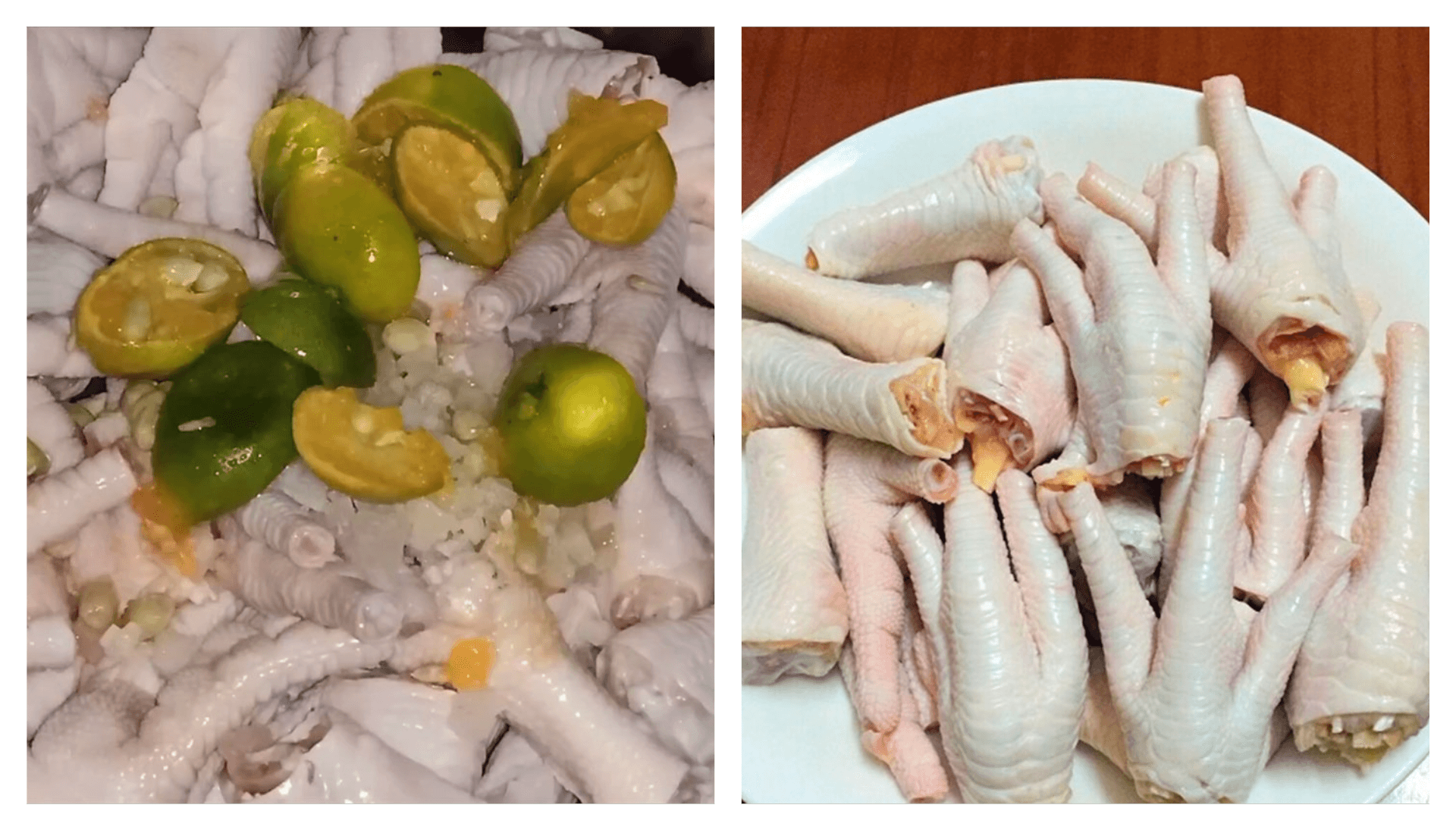 Để khử mùi hôi của chân gà, bạn cho 5 trái tắc cắt đôi và 2 muỗng canh muối vào phần chân gà, trộn và chà xát khoảng 5 - 10 phút rồi rửa lại với nước nhiều lần.