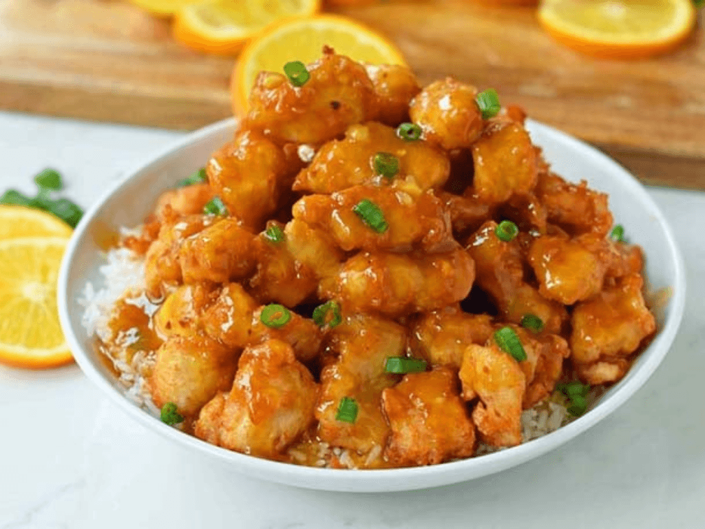 Thưởng thức đúng cách: Ăn gà sốt cam nóng cùng cơm trắng, bánh mì hoặc các loại rau sống để tăng thêm hương vị hấp dẫn.