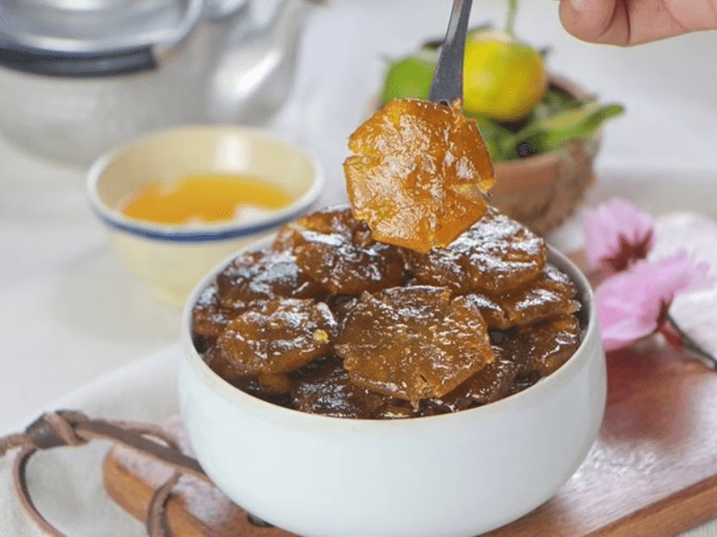 Thêm một chút nước cốt chanh để cân bằng vị chua ngọt, đồng thời giúp mứt không bị đường kết tinh và giữ màu vàng tươi.