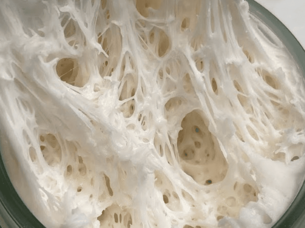 Trong không gian kín, hơi nước bốc lên tạo độ ẩm và nhiệt nhẹ ổn định (~35 40°C) mức hoàn hảo để men hoạt động mạnh mẽ nhất. Bột sẽ nở đều, mịn, không bị khô mặt mà vẫn giữ được cấu trúc đàn hồi. Khi chạm vào, bạn sẽ thấy bề mặt bột mượt và đàn hồi như “gối bông” dấu hiệu ủ thành công tuyệt đối.
