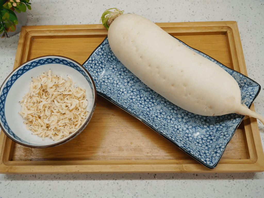 - Cách làm: Sơ chế củ cải trắng và tôm tươi, sau đó xào củ cải trắng với hành tím, gừng và hành tây. Nêm nếm gia vị và cho tôm tươi vào nấu chín. Nêm gia vị và rắc hành lá, ngò rí để tăng hương vị.