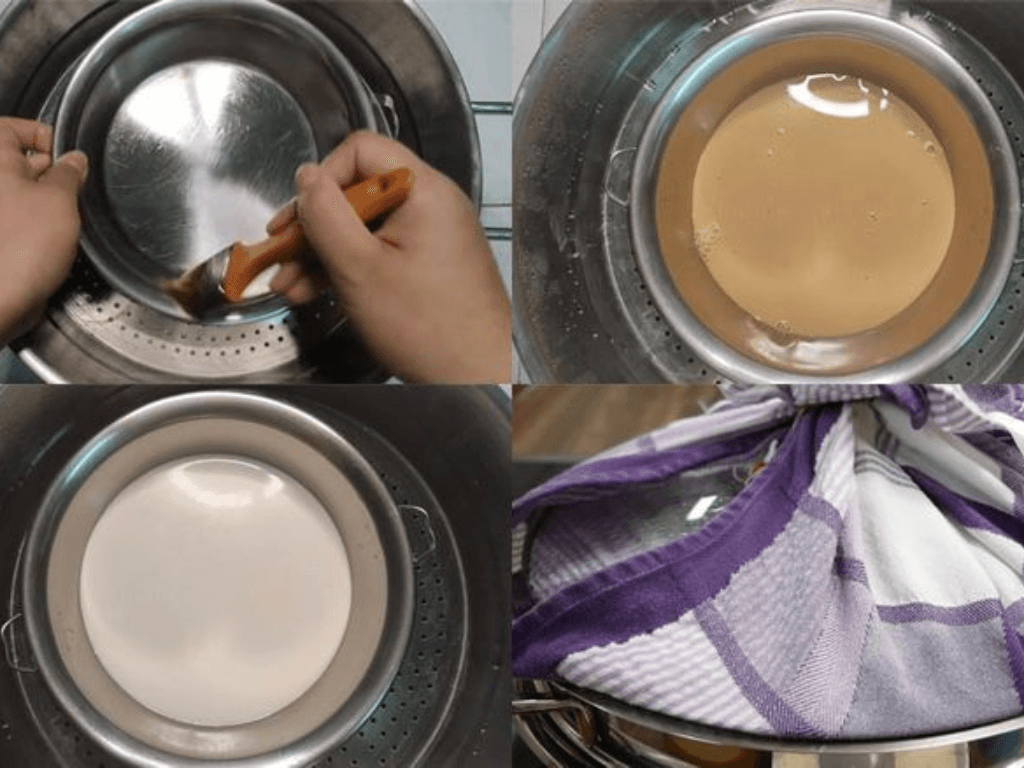 Phô mai mozzarella: Ngâm phô mai mozzarella trong nước ấm cho đến khi tan chảy hoàn toàn. Sau đó, bạn dùng rây lọc để loại bỏ phần nước và chỉ giữ lại phần phô mai mềm mịn.