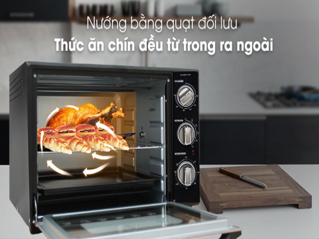- Quạt đối lưu: Tiện ích này giúp phân phối nhiệt độ đồng đều khắp khoang lò khi nướng, đảm bảo thực phẩm chín đều, thơm ngon hơn. Điều này cực kỳ quan trọng để đảm bảo thực phẩm không bị cháy hoặc chín không đều ở các vị trí khác nhau trong lò.