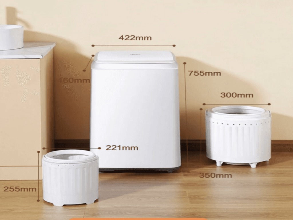 - Kích thước nhỏ gọn: Máy giặt mini có thiết kế nhỏ, phù hợp với những không gian hạn chế như căn hộ nhỏ, phòng trọ hoặc nhà ở không có nhiều diện tích để đặt máy giặt lớn.