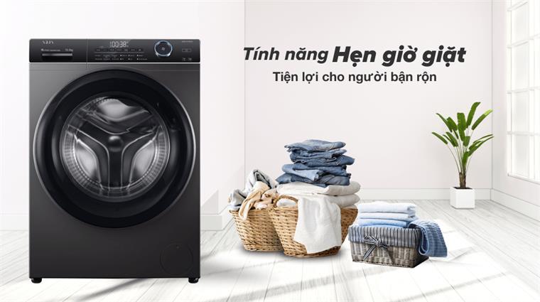 Với tính năng hẹn giờ giặt, bạn có thể cài đặt thời gian cho máy tự khởi động. Đây là sự tiện lợi phù hợp cho những bà nội trợ bận chăm con nhỏ hay những người có công việc khá bận rộn. Khi cài đặt chế độ này, máy sẽ tự động giặt quần áo, sau đó bạn có thể lấy quần áo ra phơi vô cùng tiện lợi. Bạn nên hạn chế việc để quần áo lâu trong máy giặt dẫn đến có mùi hôi.