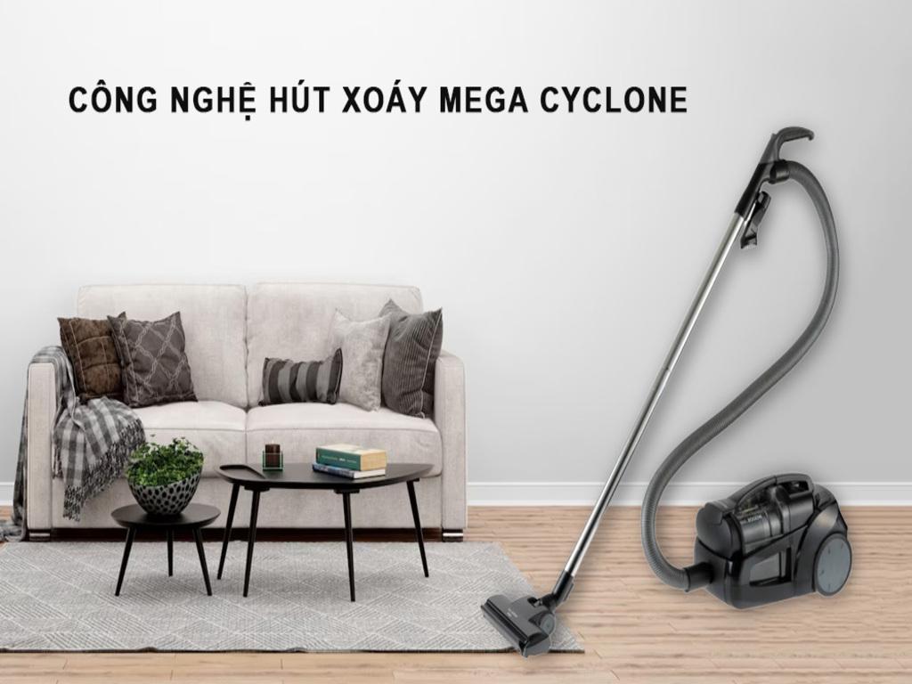 Mega Cyclone không chỉ tăng cường lực hút mà còn có khả năng tách và đẩy bụi vào khoang chứa riêng, giảm thiểu việc bụi bám vào bộ lọc. Điều này giúp tránh tình trạng tắc nghẽn bộ lọc, giữ cho hiệu suất hoạt động của máy luôn ổn định và cao hơn. Đồng thời, việc tách và lưu trữ bụi bẩn một cách hiệu quả cũng giúp bảo dưỡng máy hút bụi dễ dàng hơn.