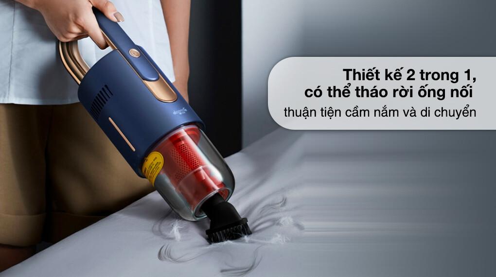 - Máy có thiết kế 2 trong 1 có thể tháo rời ống nối và sử dụng như máy hút bụi cầm tay, tiện vệ sinh mọi nơi: sàn, ghế sofa, bàn phím hay trong xe hơi.
