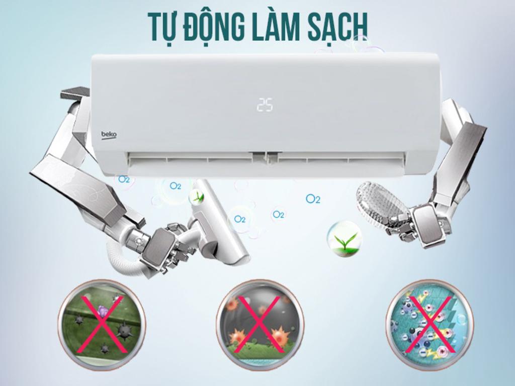 • - Chức năng tự làm sạch: Tính năng này giúp máy có thể tự động vệ sinh sau mỗi lần hoạt động thông qua quy trình làm khô của quạt gió, ngăn ngừa môi trường sinh sôi mầm bệnh.