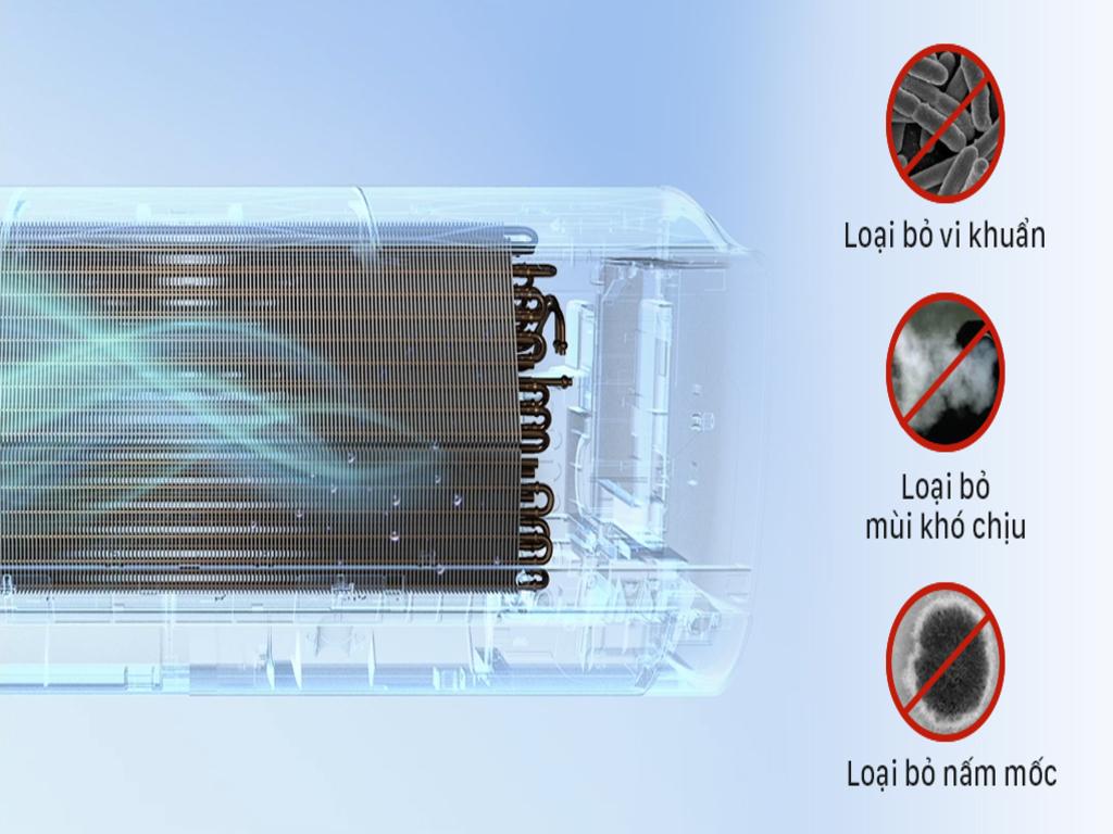 - Thanh lọc không khí (Air Purification, Plasmaster Ionizer ++, UVnano): Hệ thống này bao gồm các tính năng như Air Purification, Plasmaster Ionizer ++, và UVnano. Plasmaster Ionizer ++ giúp loại bỏ các chất gây hại và khử trùng, trong khi UVnano sử dụng tia UV để ngăn chặn sự tái sinh của vi khuẩn và virus trong máy lạnh.