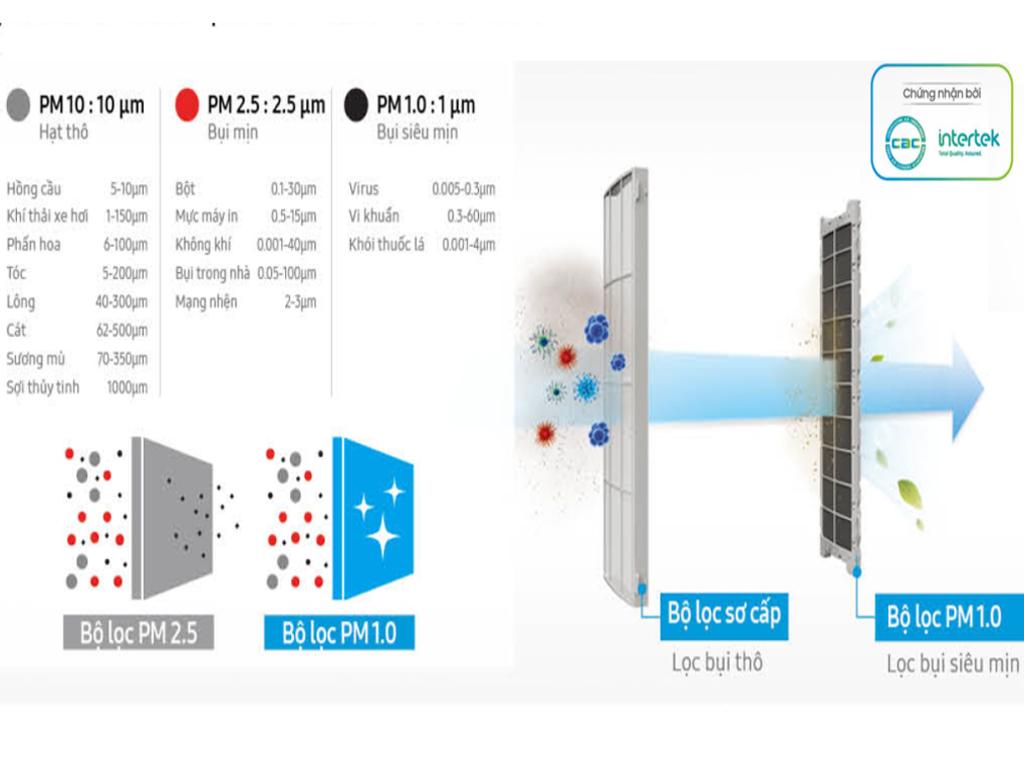 Bộ lọc 1.0 có khả năng lọc sạch bụi siêu mịn hoàn toàn để giúp cho không khí căn phòng trở nên trong lành. Đồng thời, bộ lọc này thường đi kèm với bộ lọc lớn bao phủ toàn bộ bề mặt hút gió, có thể hoạt động nhanh gấp đôi so với bộ lọc PM2.5, từ đó giúp công việc làm sạch trên bộ lọc được nhanh chóng và hiệu quả hơn.