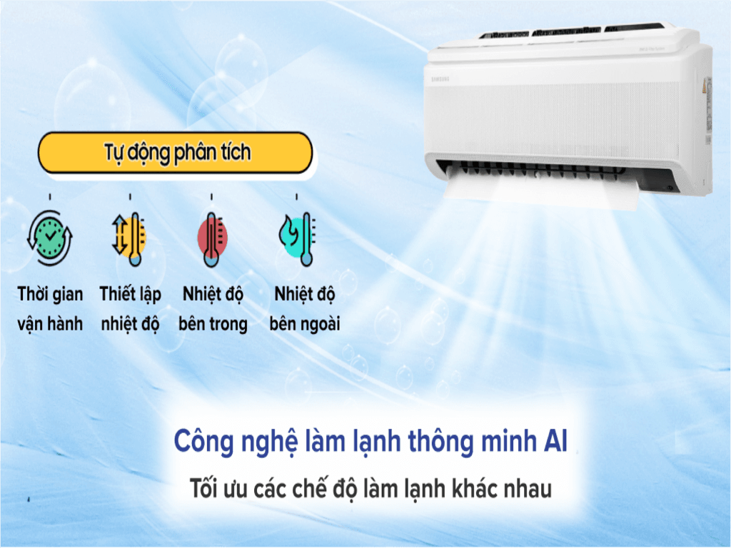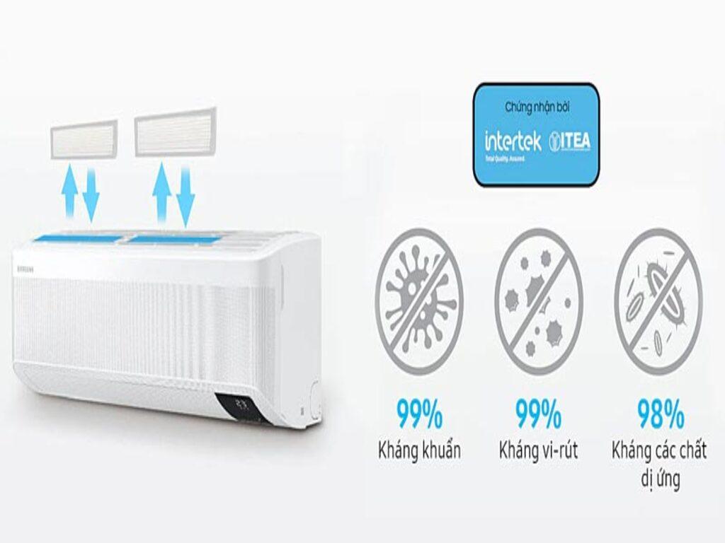 - Công nghệ lọc không khí tiên tiến: Máy lạnh Samsung tích hợp các bộ lọc không khí như bộ lọc HD, bộ lọc 3 lớp, và công nghệ khử mùi, giúp loại bỏ bụi bẩn, vi khuẩn, và các mùi khó chịu, mang lại không gian trong lành.