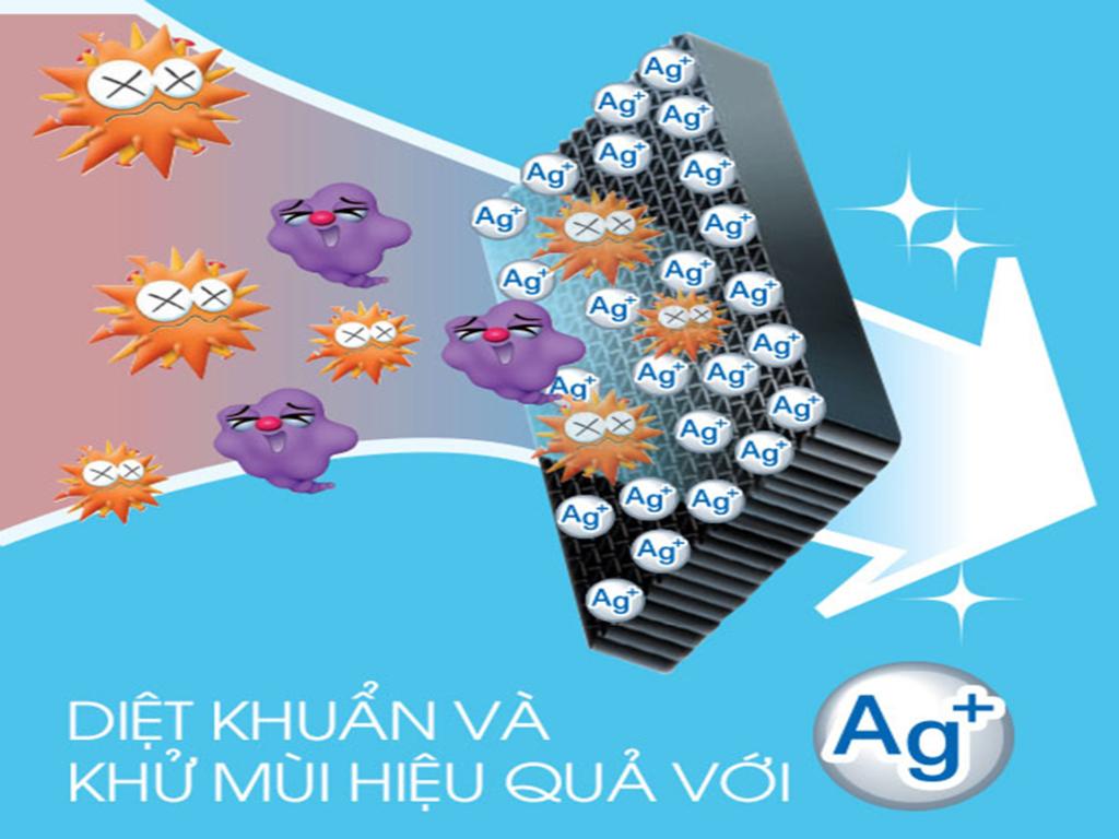 + Phân tử bạc có thể kháng khuẩn lên đến 99%. Bạn hoàn toàn có thể an tâm, hơn vì không khí trong phòng sẽ gần như được sạch vi khuẩn.
