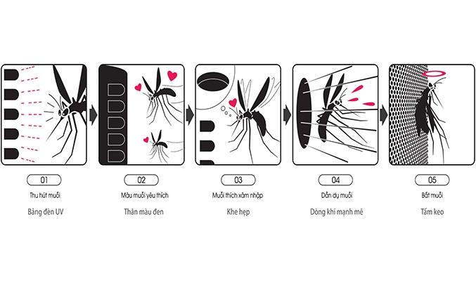 Máy Lọc Không Khí Và Bắt Muỗi Sharp FP-JM30V-B thu hút muỗi với đèn UV và dẫn dụ muỗi bay vào các khe hẹp và đen trên thân máy. Máy Lọc Không Khí sẽ bắt muỗi bằng dòng khí thổi mạnh mẽ nghiêng 20 độ nhằm hút muỗi vào trong và giữ lại bằng tấm keo.
