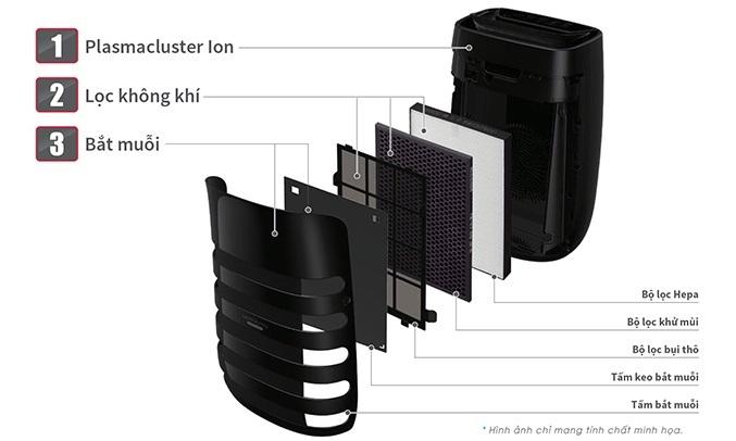 Máy lọc không khí Sharp có bộ lọc bụi thô, bộ lọc HEPA loại bỏ chất gây dị ứng, vi-rút có kích thước 0.3 micro mét và hạt bụi siêu nhỏ PM2.5.