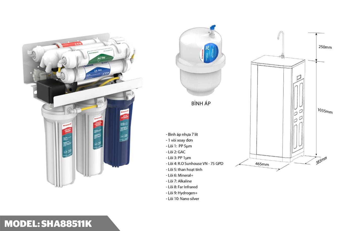 Giới thiệu: Máy lọc nước 10 cấp Sunhouse SHA88511K