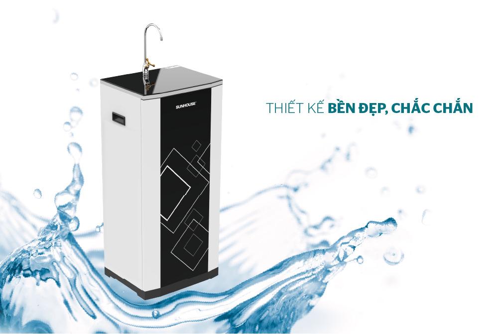 Máy lọc nước R.O 10 lõi SUNHOUSE SHA88511K có vỏ tủ làm bằng chất liệu kính cường lực tạo cảm giác bền đẹp, chắc chắn. Thiết kế kính tràn viền mặt trên và mặt trước cùng với họa tiết độc đáo tạo sự khác biệt với những sản phẩm máy lọc nước phổ biến trên thị trường.