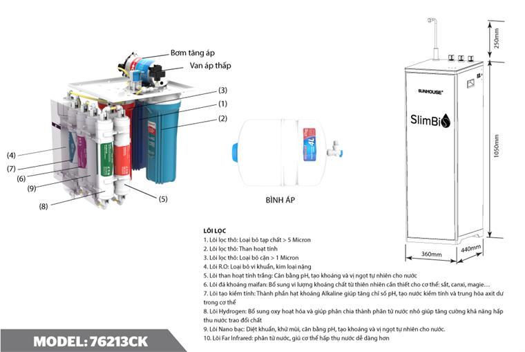 Giới thiệu: Máy Lọc Nước nóng lạnh Sunhouse 10 cấp SHA76213CK-S