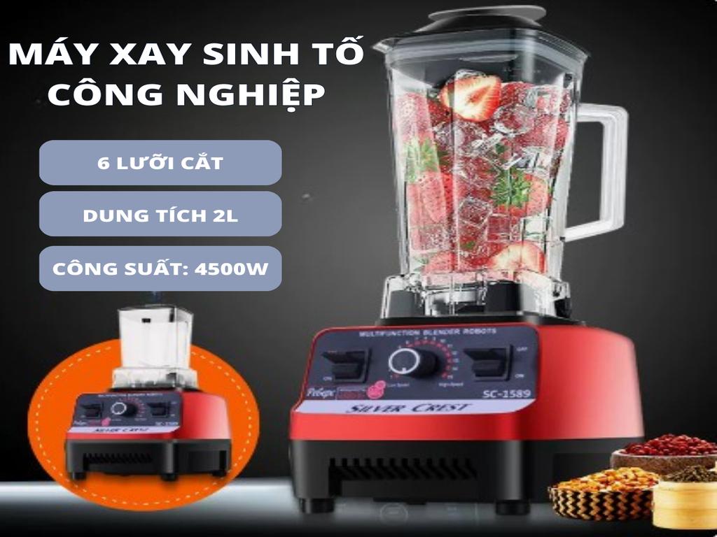 Máy xay sinh tố công nghiệp là thiết bị chuyên dụng được sử dụng trong các nhà hàng, quán cà phê, khách sạn, hay cơ sở sản xuất thực phẩm, giúp xay nhuyễn nhanh chóng và hiệu quả các nguyên liệu như trái cây, rau củ, hạt khô, đá, và các thực phẩm đông lạnh. Đặc điểm nổi bật của máy xay sinh tố công nghiệp là công suất lớn, thường từ 1000W đến 2000W, cho phép hoạt động liên tục và xay mịn mọi loại nguyên liệu, ngay cả khi xử lý khối lượng lớn trong thời gian ngắn.