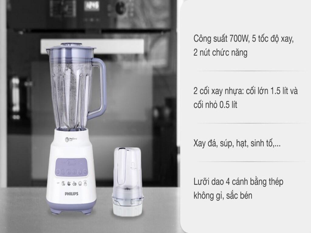 - Tính năng đa dạng và tiện lợi: Máy xay sinh tố Philips thường được trang bị nhiều chế độ xay khác nhau, từ xay nhuyễn đến xay đá. Ngoài ra, các tính năng như chức năng tự động và các chương trình điều khiển thông minh cũng giúp người dùng dễ dàng điều chỉnh theo nhu cầu sử dụng.
