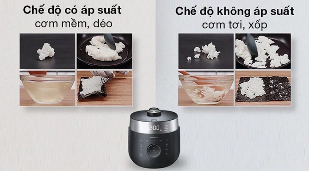 - Công nghệ nấu hiện đại: Cuckoo tích hợp nhiều công nghệ tiên tiến như áp suất cao (pressure cooking) và nấu đa năng, giúp cơm nấu chín đều, thơm ngon, giữ được dinh dưỡng.