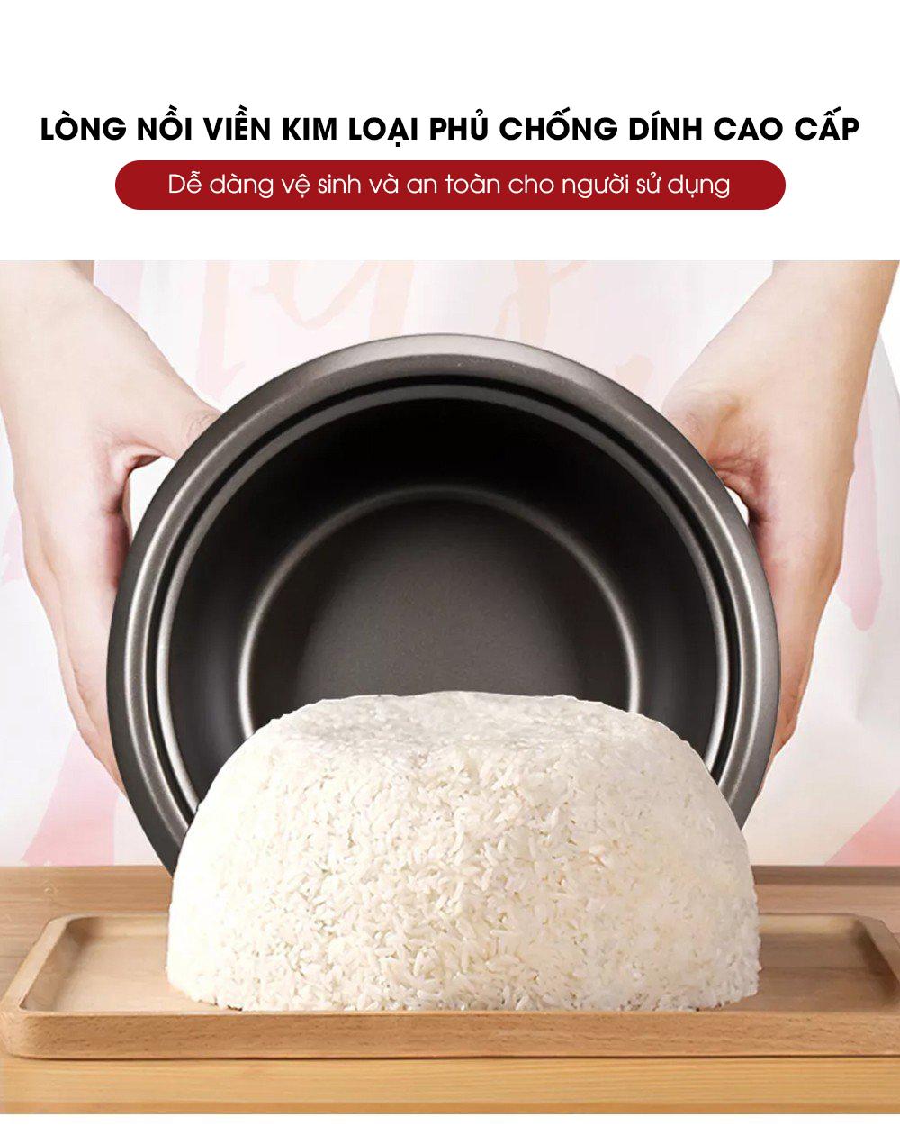Lòng nồi viền nhôm có khả năng truyền nhiệt cao, giúp hạt cơm chín đều và mềm dẻo, và được phủ lớp chống dính cao cấp dễ dàng vệ sinh, hạn chế bám dính, an toàn sức khỏe