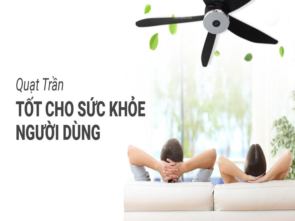 - Tăng cường lưu thông không khí: Quạt trần giúp lưu thông không khí trong phòng, làm giảm độ ẩm và ngăn ngừa sự tích tụ của không khí tù đọng, từ đó giúp giảm nguy cơ mắc các bệnh về đường hô hấp.