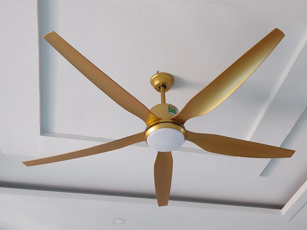 - Quạt trần công nghiệp: Đây là loại quạt trần có kích thước lớn, cánh quạt dài và công suất mạnh mẽ, được thiết kế để làm mát các không gian rộng như nhà xưởng, nhà kho, hoặc phòng tập thể dục. Loại quạt này tạo luồng gió mạnh và đồng đều, giúp lưu thông không khí hiệu quả trong các khu vực có diện tích lớn. Quạt trần công nghiệp thường có độ bền cao, tiết kiệm năng lượng và hoạt động ổn định trong môi trường khắc nghiệt.