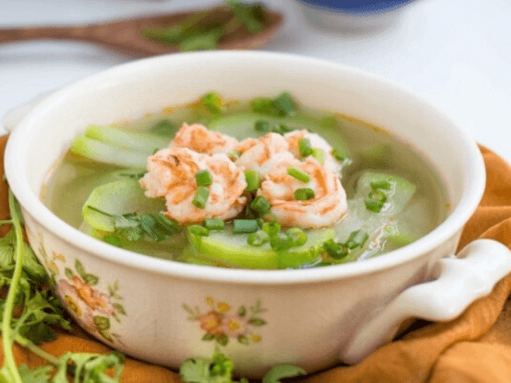 - Canh thanh mát: Nấu canh bí đao với tôm tươi hoặc thịt nạc băm, thêm chút gừng để cân bằng tính hàn.