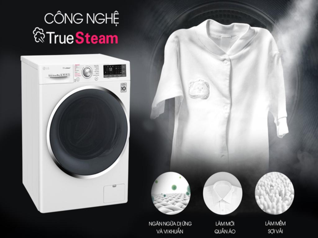 Giặt bằng hơi nước TrueSteam là công nghệ sử dụng sức mạnh của hơi nước để tăng thêm hiệu quả giặt giũ. Công nghệ TrueSteam vẫn như các công nghệ giặt hơi nước khác khi sử dụng hơi nước để làm sạch quần áo. Tuy nhiên, thay vì hơi nước được thổi từ bên dưới lồng giặt lên thì TrueSteam cho phép hơi nước phun từ phía bên trên lồng giặt nhờ trang bị động cơ phun mạnh mẽ.