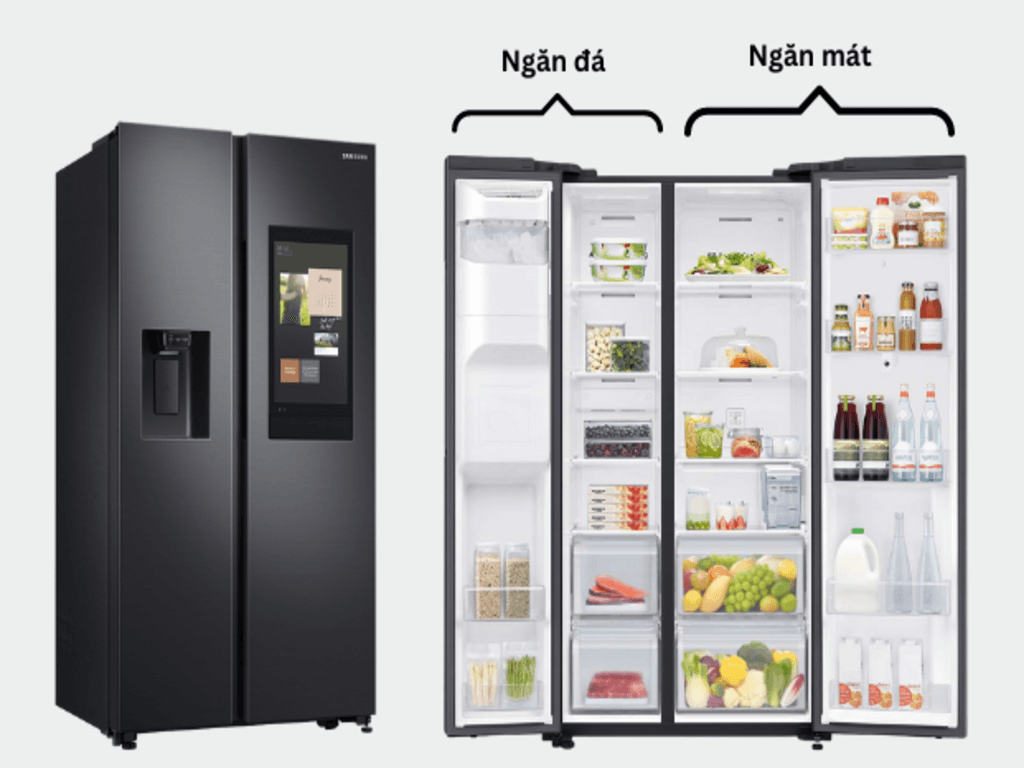 Tủ lạnh side by side là dòng tủ lạnh cao cấp với thiết kế hai cánh mở song song, ngăn đá và ngăn mát đặt cạnh nhau, giúp người dùng dễ dàng sắp xếp và lấy thực phẩm. Loại tủ này thường có dung tích lớn, phù hợp cho gia đình đông người hoặc nhu cầu lưu trữ nhiều thực phẩm. Ngoài ra, tủ lạnh side by side thường đi kèm với các tính năng hiện đại như làm đá tự động, lấy nước bên ngoài, và bảng điều khiển cảm ứng. Thiết kế sang trọng, chất liệu cao cấp mang lại vẻ đẹp tinh tế cho không gian bếp. Dưới đây là một số ưu điểm của tủ lạnh side by side: