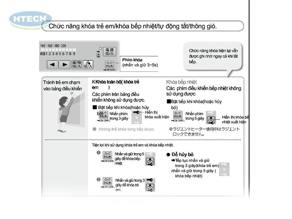 Cách sử dụng bếp từ nội địa Nhật chế độ khóa trẻ em như sau: