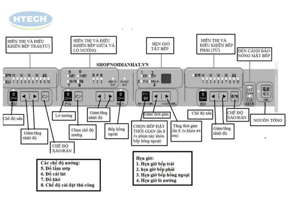 1. Ý nghĩa nút cơ bản trên bếp từ nội địa Nhật