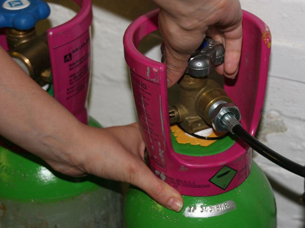 Điều chỉnh van bình gas sao cho khí gas có thể thoát ra với áp lực phù hợp.