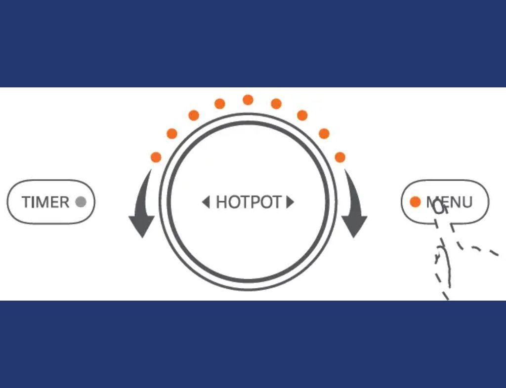Để truy cập vào menu, hãy nhấn nút "MENU". Sau đó, xoay núm điều khiển để duyệt qua các mục trong menu và chọn chế độ nấu mà bạn muốn sử dụng. Bằng cách xoay núm điều khiển, bạn có thể chọn theo thứ tự sau: "HOTPOT, STEAM & BOIL, SIMMER, STIR FRY, DEEP FRY". Khi đã chọn chế độ mong muốn, hãy nhấn núm điều khiển để bắt đầu nấu theo chế độ đã chọn.