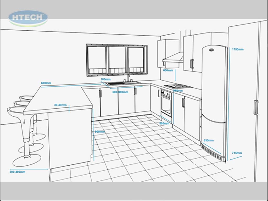 - - Từ mặt bếp đến tường phía sau: Tối thiểu 15cm.