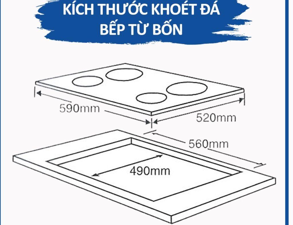 Kích thước khoét đá bếp từ Nhật 4 vùng nấu