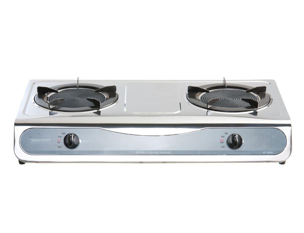 bếp ga đôi là loại bếp có 2 vùng nấu tiện lợi, giúp tiết kiệm thời gian cho người dùng khi có thể nấu 2 món ăn cùng lúc. Mặt bếp thường được làm từ kính cường lực chịu nhiệt tốt hoặc thép không gỉ, dễ lau chùi và vệ sinh.