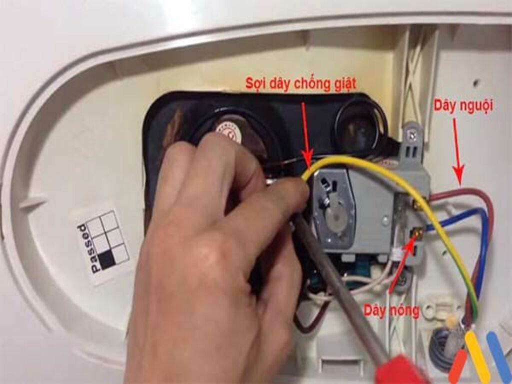 Bước 2: Thay thế dây chống giật bình nóng lạnh Ariston mới. Nhưng lưu ý 3 sợi dây đỏ, xanh, vàng cần được nối như sau: