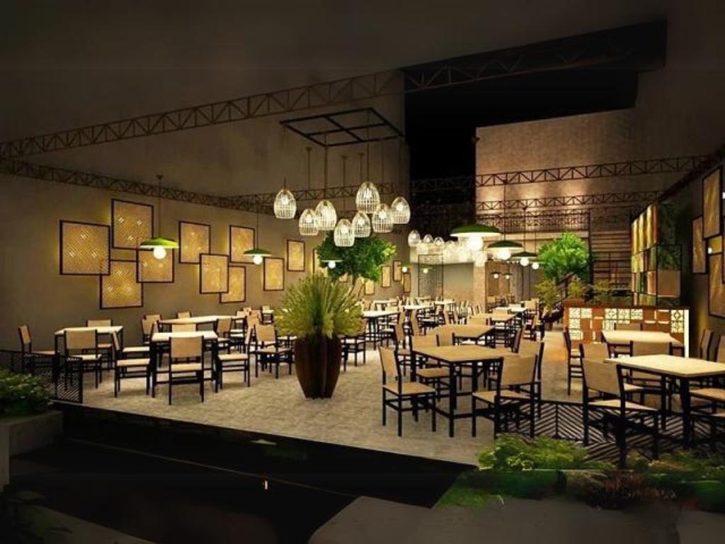 Treo đèn thả đui xoáy ánh sáng vàng ở các vị trí có bàn trà: Sử dụng đèn thả trần có đui xoáy và ánh sáng vàng để tạo một không gian ấm cúng và lãng mạn cho khách hàng khi ngồi tại các bàn trà.