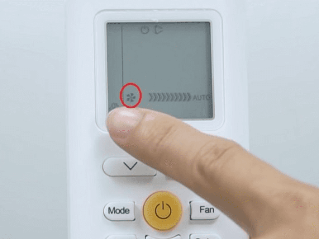 Nhấn kiểm tra chế độ làm mát (Cool) trên remote. Nếu biểu tượng quạt gió (Fan) đang được hoạt động, nhấn nút để tắt chế độ này. Sau đó, cài đặt lại chế độ làm mát (Cool) có biểu tượng hình bông tuyết.
