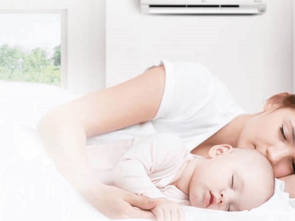 Để giúp cho trẻ sơ sinh cảm thấy mát mẻ và thoải mái trong những ngày nắng nóng, nhiều gia đình thường cho trẻ nằm dưới máy lạnh. Tuy nhiên, việc này có thể làm giảm độ ẩm và lưu thông không khí trong phòng, tiềm ẩn nguy cơ mắc các bệnh như viêm phổi hay viêm mũi cho trẻ nhỏ. Để giải quyết vấn đề này, phụ huynh cần điều chỉnh nhiệt độ phòng máy lạnh sao cho từ 26 đến 28 độ C là lý tưởng cho trẻ sơ sinh. điều hòa casper, điều hòa toshiba … ở mức nhiệt độ này đều sẽ an toàn cho sức khỏe của bé.